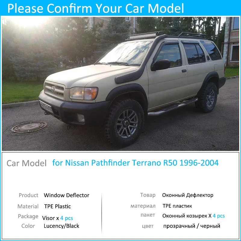 Product Name: 4x Janela Defletores Viseira Ventilação Toldos Guarda Defletor Abrigos Escudo Acessórios Para Nissan Pathfinder Terrano R50 1996 ~ 2004