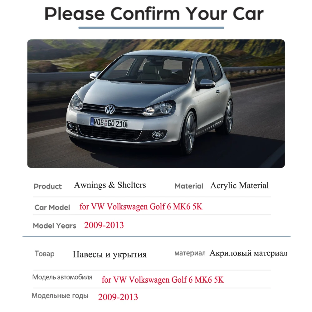 Product Name: Janela Do Carro Da Viseira Guarda Chuva Para Volkswagen VW Golf 6 MK6 2009 ~ 2013 Acessórios Do Carro Toldos Abrigos Golf6 5K 2010 2011 2012